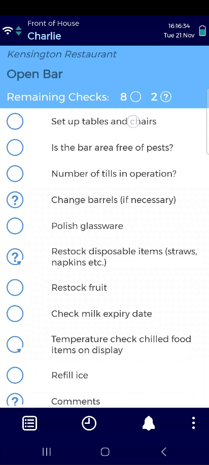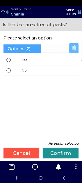When you have completed the check, tap Confirm.