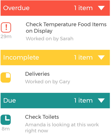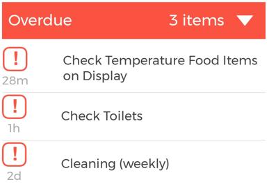 If a scheduled checklist has not been completed in time, it will appear under the Overdue heading. Safety Managers and Supervisors will also receive an overdue alert
