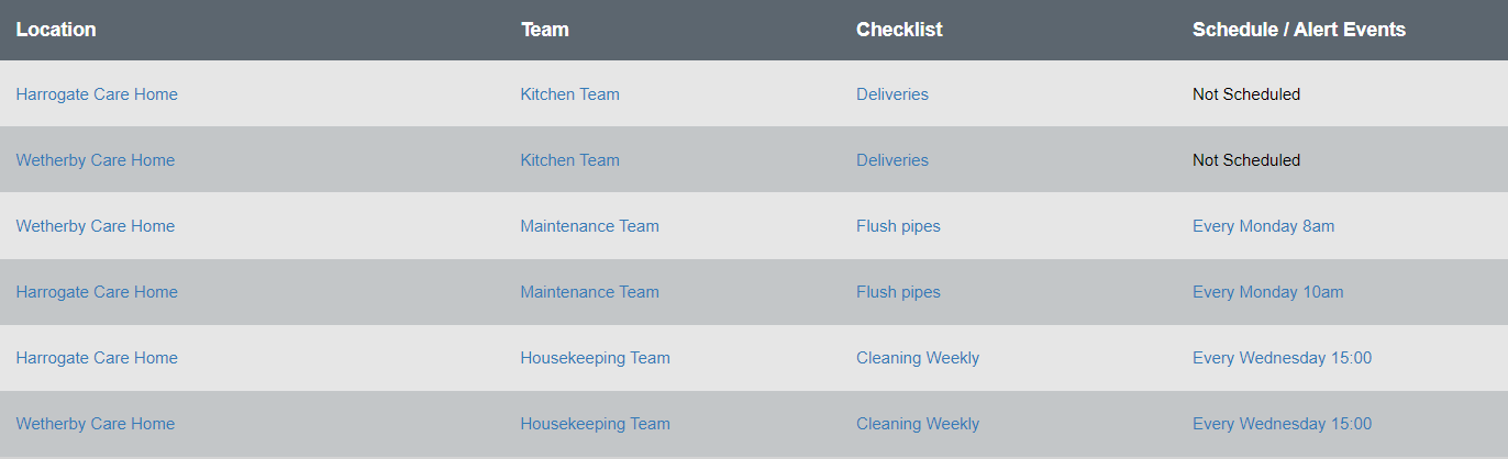 You can assign the same checklist or single check to multiple locations, teams, and schedules.